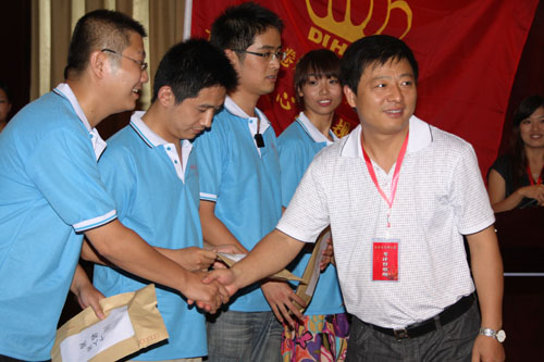 瑞信公司董事长王丰给优秀学员颁奖