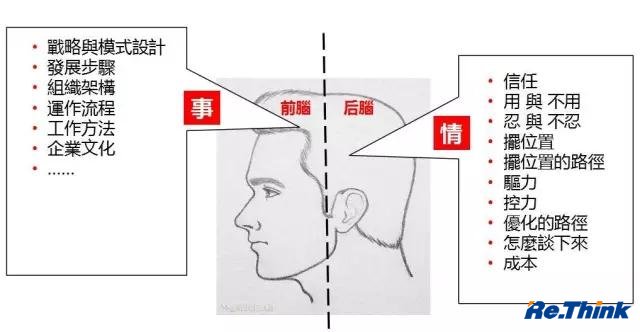 所以我就把过去20多年在跨国企业任职高管的实战经历,和在国内当教授看项目的经验,消化吸收后变成比较通俗的思维框架,让大家听了就可以用。比如“前脑策略,后脑谋略”,策略负责事,谋略负责情,后脑思维就是怎么处理好人,因为生意是人的生意。