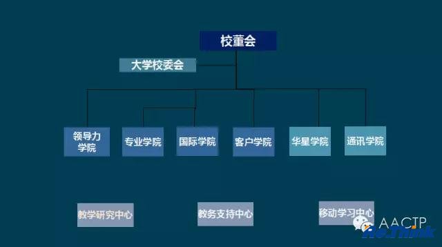 这是我们的架构,“4+3+2”目前有两个企业学院,有四个大学的学院,另外有三个中心。