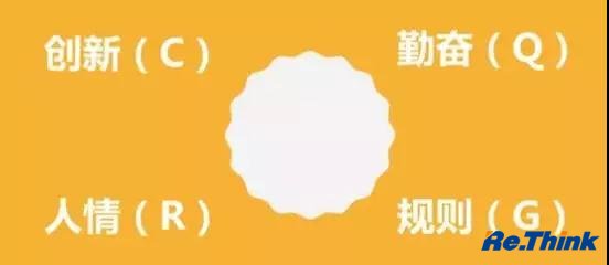 勤奋(Q代替):强调努力/勤奋,热爱工作; 规则(G代替):强调制度/规则,关注品质; 创新(C代替):强调创新/冒险,注重创造; 人情(R代替):强调同理心,关注人际和谐。