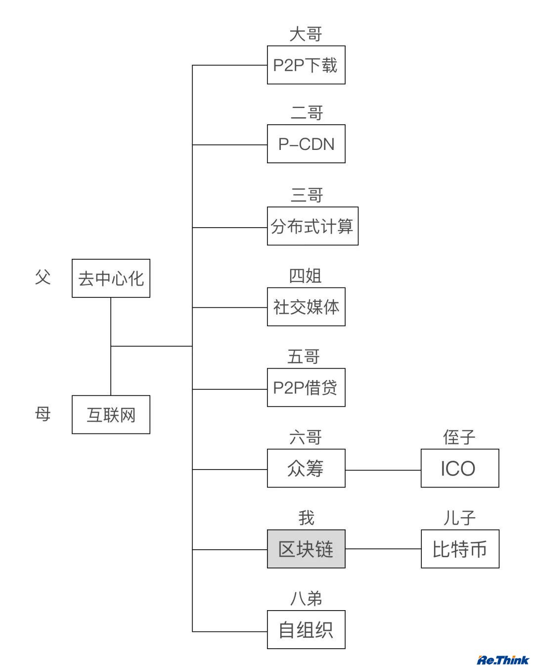自从我有了孩子之后,我的六哥众筹,也生了个儿子。他娶了一个太太叫代币,代币就是比特币的原型,比特币的逻辑。他俩结合,也就是众筹取得代币的逻辑之后,生下了儿子ICO,这是我们整个家族里面的第二个孙子辈小孩。