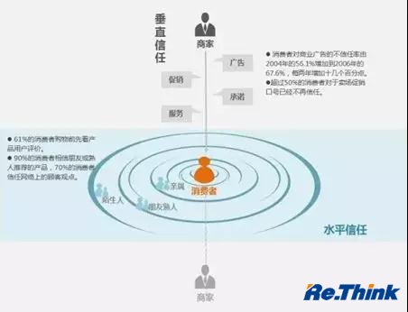 虽然消费者独立思考的意识在增强,但他们对企业却逐渐失去信心。消费者对企业的广告和专家的推荐信息并不重视,反而更加关注消费者的口碑。原因有两个:一方面,社会整体的信任度降低。部分企业过度逐利使商业道德问题频发,降低了消费者的信心。另一方面,消费者之间的互信增强。社交媒体的兴起,使消费者形成更紧密的联系,他们彼此间的信任要远高于对企业的信任。虚拟环境下的信任关系发生了转移,消费者由对企业的“垂直信任”,逐渐转为对其他消费者的“水平信任”。