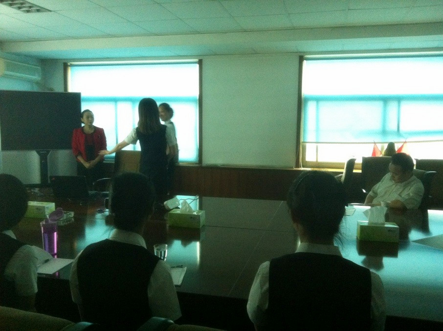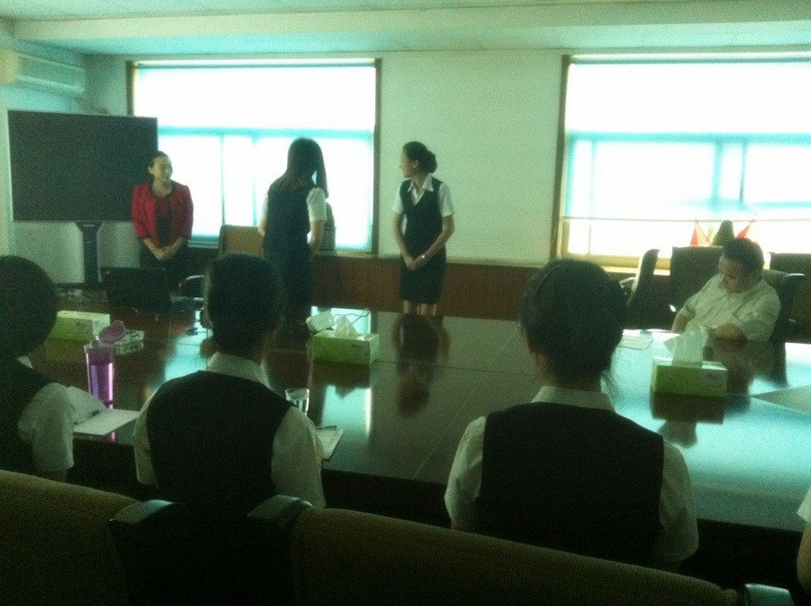 2013年5月28日,某银行接待人员会务接待培训在某银行举办。此次主题为“会务接待礼仪”,由瑞信特聘培训师王雪老师进行授课。此次培训在某银行领导的支持下圆满成功。